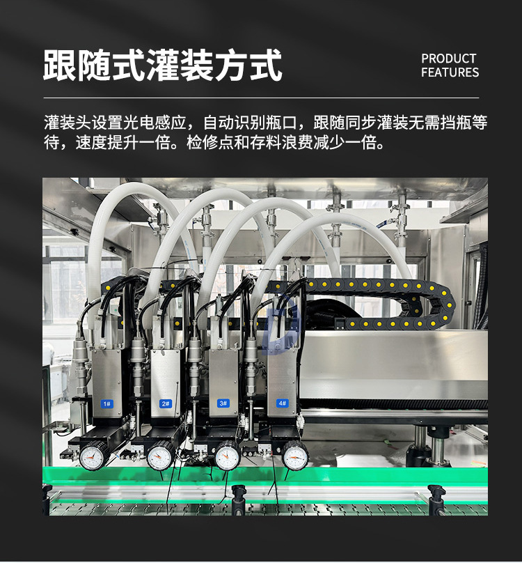 四頭移動跟蹤式液體灌裝機